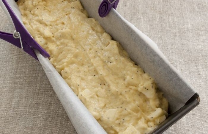 6Получившееся тесто выкладываем в форму, застеленную пергаментом, и отправляем в духовку на 45 минут, предварительно разогретую до 160 градусов.
