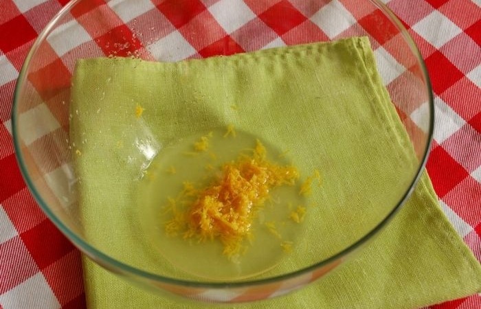1С лимона счищаем цедру с помощью терки. Также выжимаем сок.