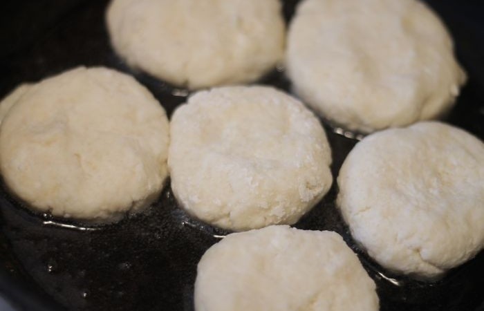 4Выкладываем сырники на раскаленную сковороду и обжариваем до готовности с двух сторон.