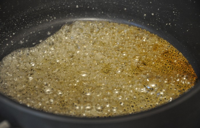 5Сахар смешиваем с водой и ставим на огонь. Кипятим несколько минут до золотистого цвета, затем снимаем с огня и добавляем бальзамический уксус.