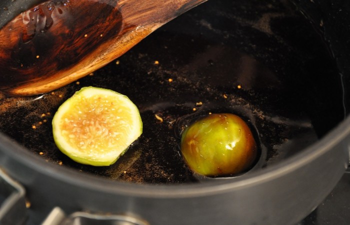 6В получившуюся смесь выкладываем инжир и снова ставим на огонь. Доводим до кипения, но не кипятим.