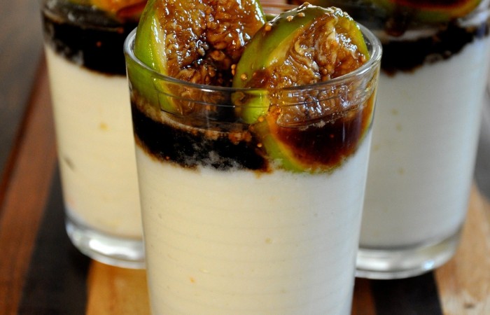 7Инжир выкладываем в стаканы с рикоттой и подаем к столу. Приятного аппетита!