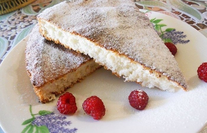 6Ангельский бисквит готов. Разрезаем на порционные куски, украшаем малиной и подаем к столу. Приятного аппетита!