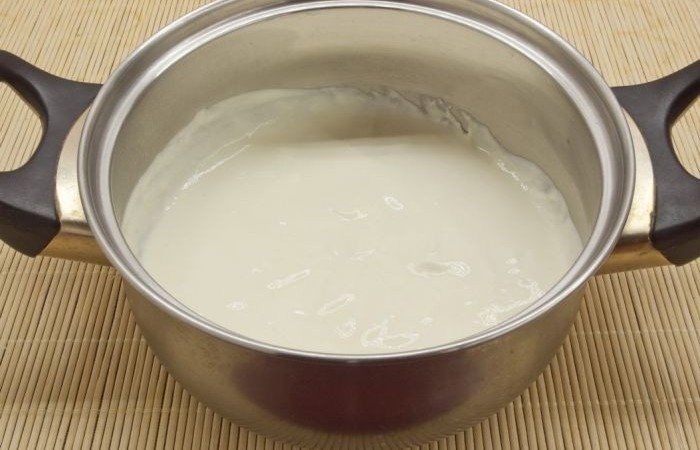 2Сметану выкладываем в кастрюлю и доводим до кипения.