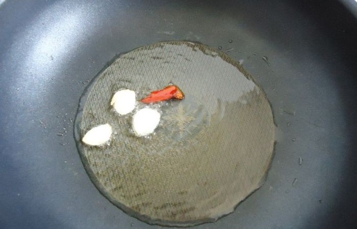 2Разогреваем сковороду, наливаем масло и обжариваем чеснок со жгучим перцем в течение нескольких минут.