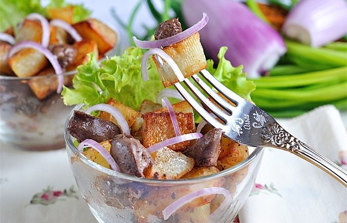 Как приготовить Жареная картошка с печенью - пошаговое описание