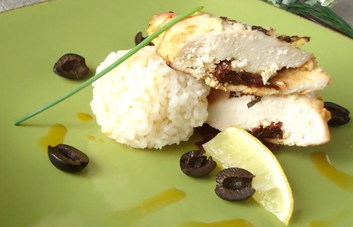 3По истечению времени начиняем грудки вялеными помидорами и базиликом, развернув грудку или сделав надрезы.