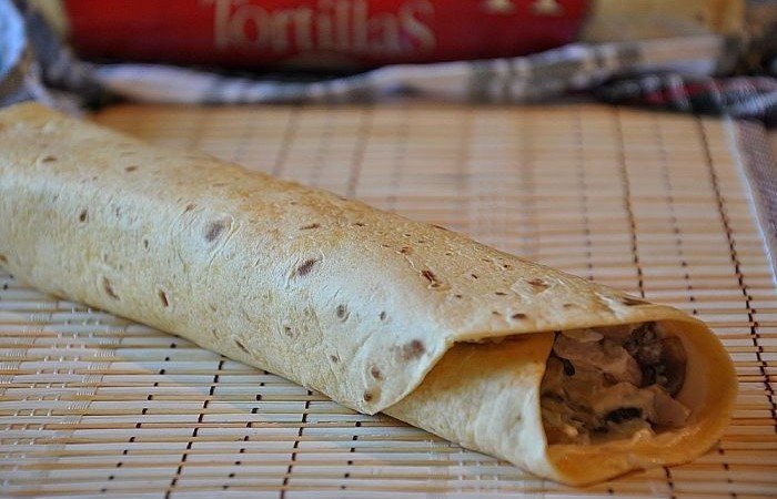 5Аккуратно сворачиваем лаваш рулетиком.