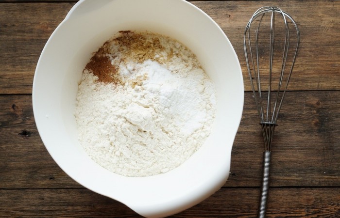 6В отдельной емкости смешиваем муку, разрыхлитель, соду, корицу и имбирь.