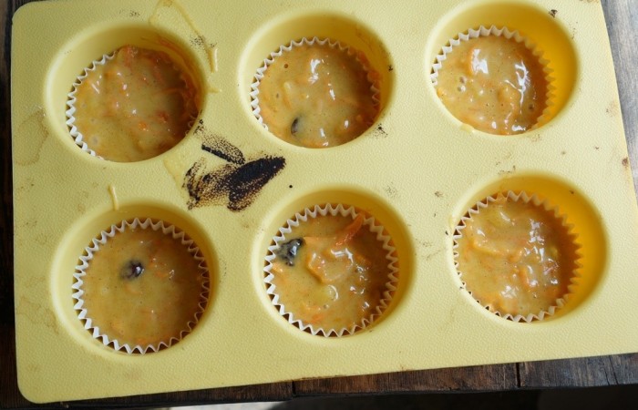 8Получившееся тесто раскладываем по формочкам, наполняя каждую примерно на 3/4. Отправляем в духовку на 20 минут, предварительно разогретую до 160 градусов.