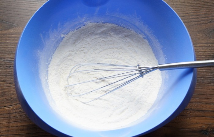 2В миске смешиваем муку с разрыхлителем.