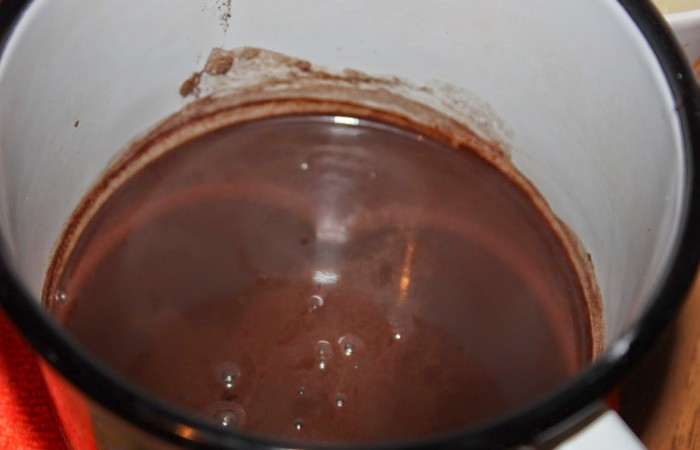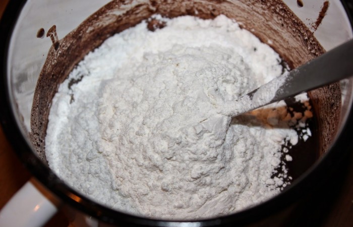 2Воду доводим до кипения и заливаем ею муку. Тщательно перемешиваем, накрываем полотенцем и оставляем на час.