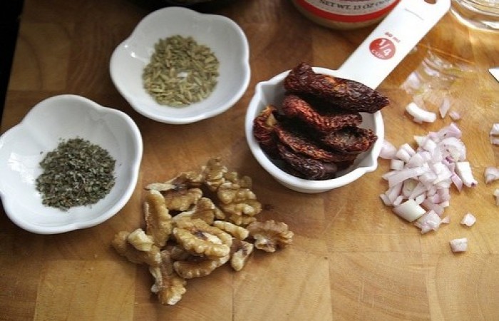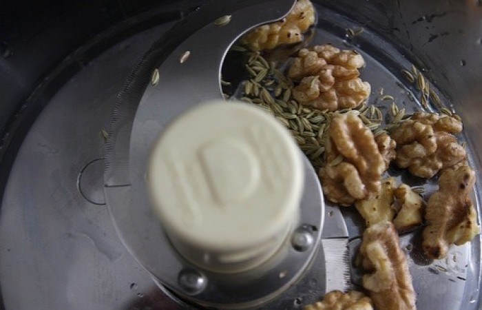 3В чашу блендера выкладываем грецкие орехи и семена фенхеля.