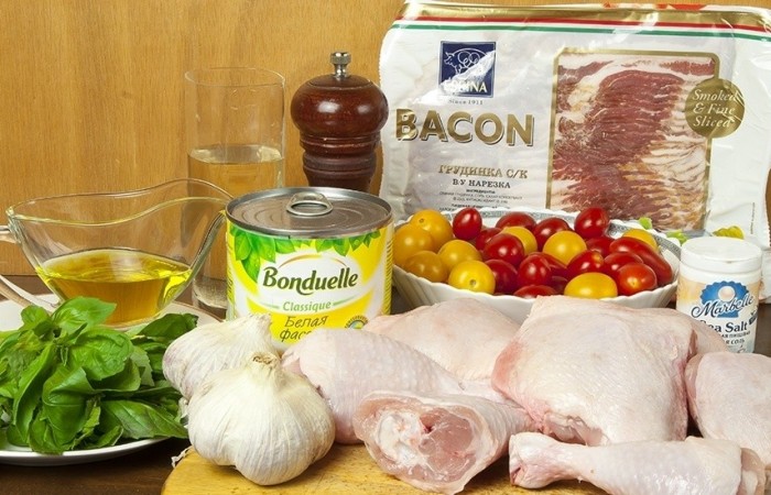 Как приготовить Курица по-итальянски с беконом, фасолью и базиликом - пошаговое описание