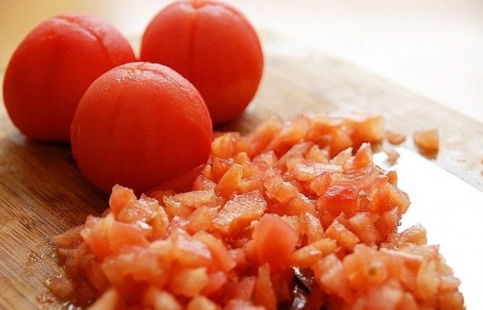6Нарезаем помидоры мелкими кубиками.