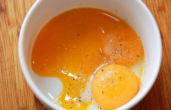 9Желтки выливаем в емкость. Солим, перчим.