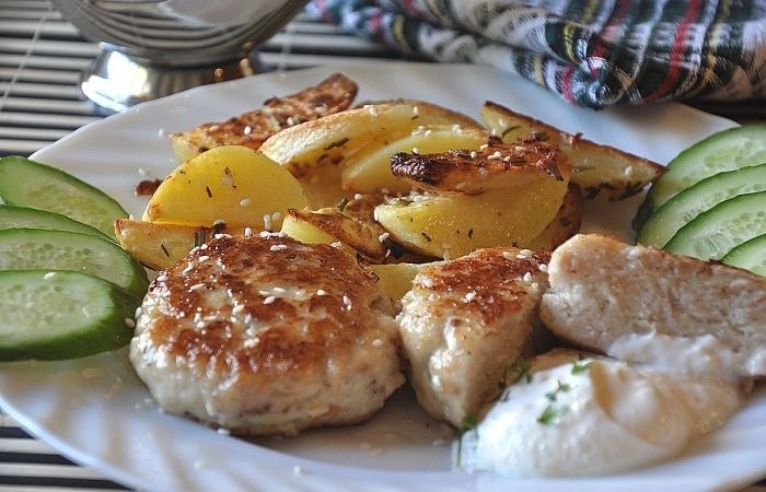 6Формируем из фарша котлеты и обжариваем на сковороде с двух сторон до румяной корочки. Подаем с соусом из хрена и сметаны. Приятного аппетита!