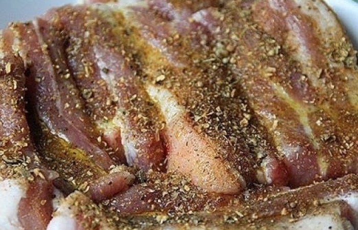 1Свиные ребра промываем, обсушиваем и режем порционными кусками. Выкладываем в глубокую емкость.