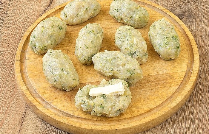 3Из фарша мокрыми руками формируем небольшие котлеты. На каждую кладем кусочек сливочного масла. Аккуратно заворачиваем.