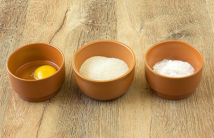 4Подготавливаем необходимые ингредиенты для панировки: яйцо, муку и панировочные сухари.