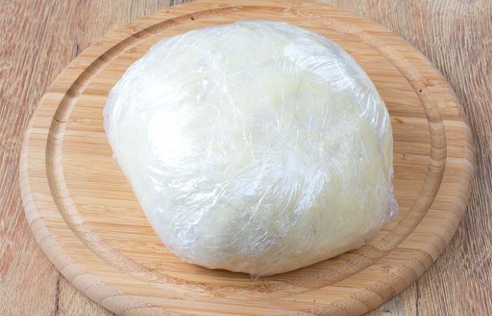 3В отдельную миску всыпаем оставшуюся муку, добавляем яйцо, сахар, водку, растительное масло и соль. Смешиваем с заваренным тестом. Тщательно вымешиваем все ингредиенты. Получившееся тесто заворачиваем в пищевую пленку и оставляем на 30 минут.