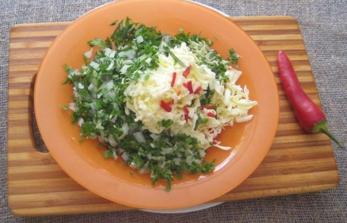 4Выкладываем ингредиенты в тарелку, добавляем мелко нарезанный розмарин, измельченный перец чили, панировочные сухари и охлажденное сливочное масло. Солим, перчим и тщательно все перемешиваем.