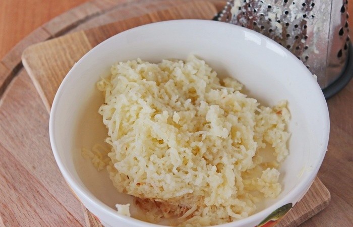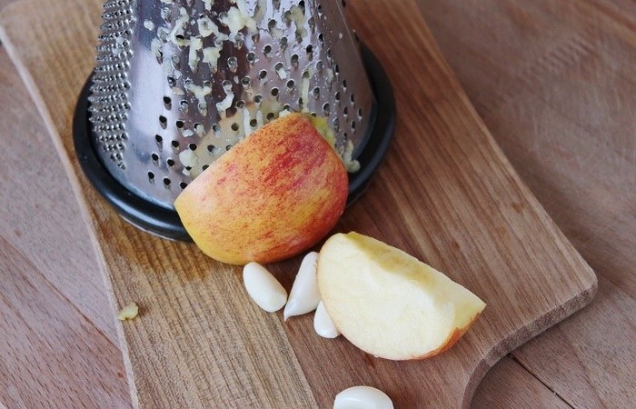3Яблоко тоже трем на средней терке, предварительно удалив сердцевину. Чеснок пропускаем через пресс или трем на мелкой терке.