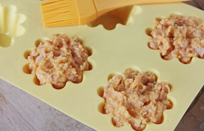 6Получившуюся массу раскладываем по формочкам, смазанным маслом. Отправляем в духовку на 25 минут, предварительно разогретую до 180 градусов.