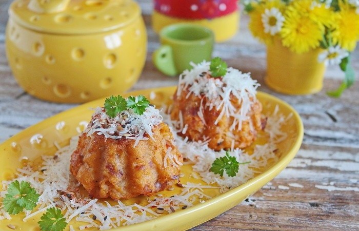 7Картофельные маффины с грудинкой готовы. Посыпаем тертым сыром и подаем к столу. Приятного аппетита!