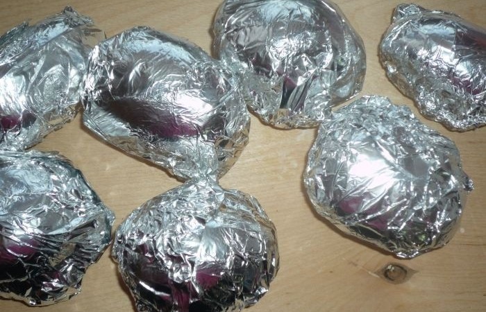 5Картофель остужаем и снимаем кожуру. Вынимаем мякоть с помощью чайной ложки.