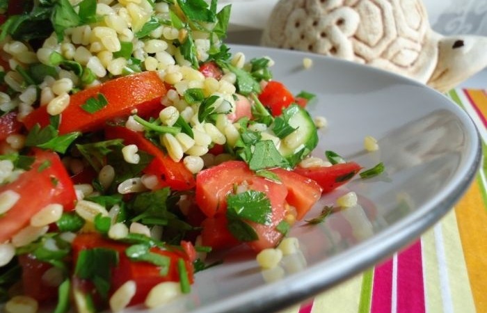 Табуле - оригинальный салат восточной кухни, где главными ингредиентами являются булгур (пшеница) и мелко рубленая зелень. Табуле заправляется лимонным соком и оливковым маслом, поэтому является пикантным блюдом.