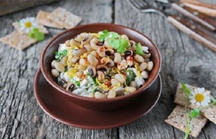 В данном салатике идеально сочетаются фасоль с брынзой, а чеснок, кинза и пикантная заправка придают блюду неповторимую изюминку и довольно оригинальный вкус.