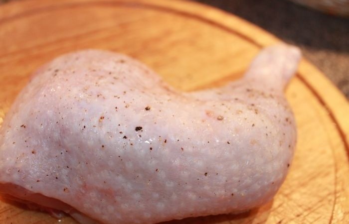 2Натираем тщательно окорочка солью и перцем.