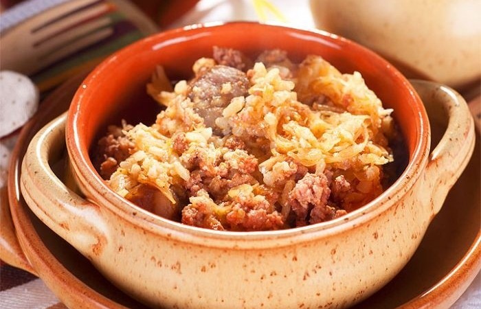Квашеная капуста со свиным фаршем и ароматными домашними колбасками - довольно оригинальное, но в тоже время совсем незатейливое в приготовлении блюдо румынкой кухни. Данный рецепт квашеной капусты с фаршем отдаленно может напомнить ленивые голубцы или капустную запеканку. Вообще, квашеную капусту можно заменить свежей, а фарш использовать любой, как говяжий, так и смешанный.