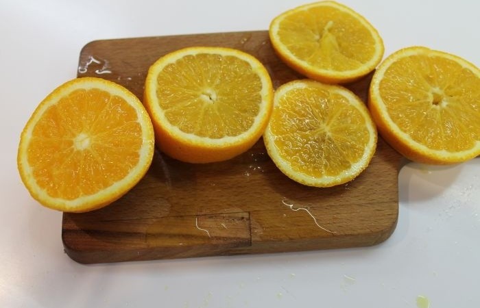 3Апельсин нарезаем кружочками.