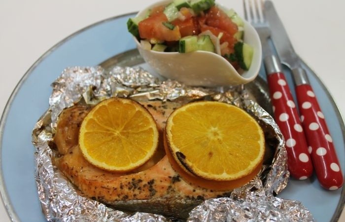 5Семга с апельсином готова. Приятного аппетита!