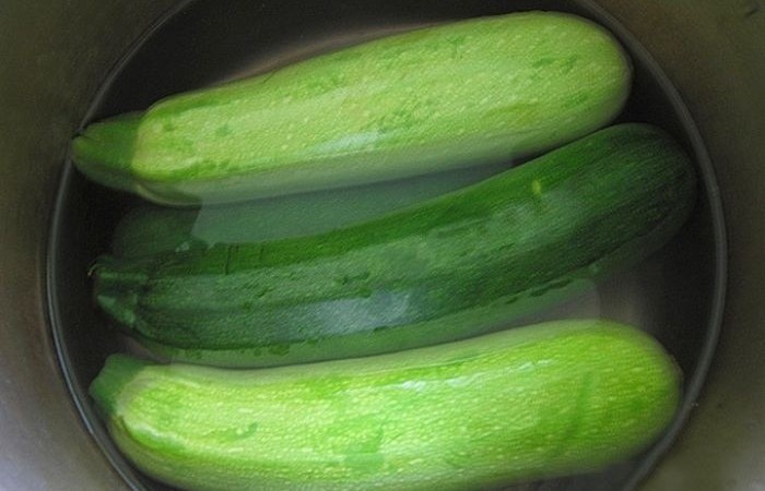 2Кабачки отвариваем в кипящей соленой воде в течение 8-10 минут.