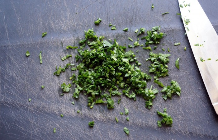 2Готовим панировку. Зелень мелко нарезаем.