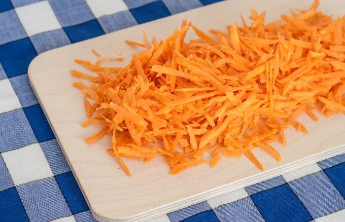2Морковь трем на крупной терке.