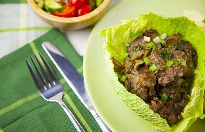 7Куриная печень с грибами готова. Приятного аппетита!