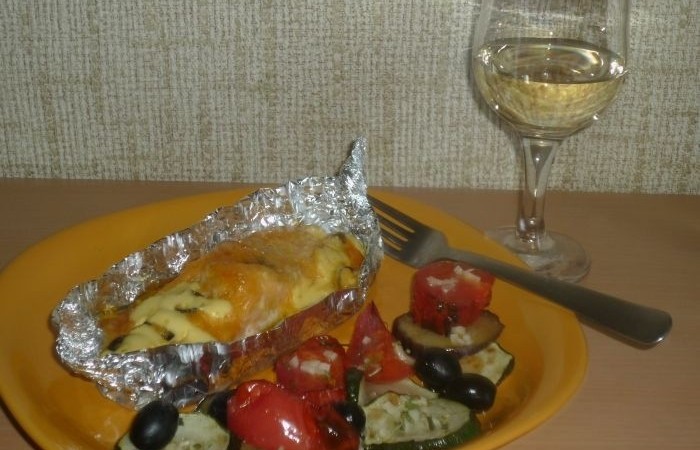 4Смазываем майонезом. Так проделываем с каждым кусочком семги. Выкладываем лодочки на противень, вливаем немного воды и отправляем в духовку запекаться на 15-20 минут при 180 градусах.