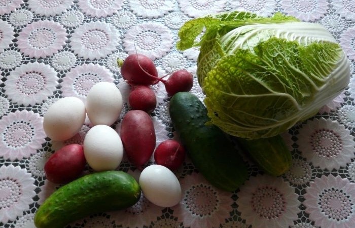 Замечательный салат из хрустящей пекинской капусты, представленный в данном рецепте, будет актуален для тех, кто сидит на диете или хочет простого разгрузочного блюда. Огурцы с редисом и яйцами обогащают вкус пекинской капусты, а чудесная заправка на основе соевого соуса, горчицы и лимонного сока придает салату особенную пикантность и легкую нотку остроты.