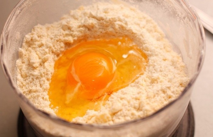 1Готовим тесто. В чашу блендера выкладываем муку, соль и сливочное масло и измельчаем смесь до состояния крошки.