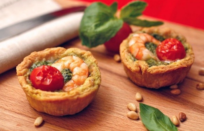 11Тарталетки с соусом песто и креветками готовы. Приятного аппетита!