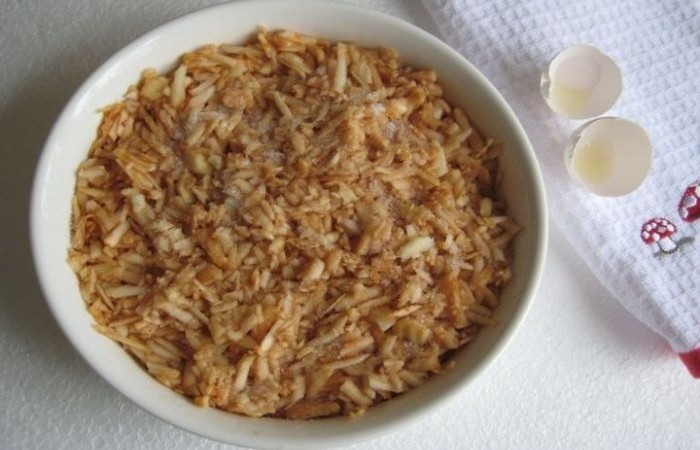 2Яблоки трем на крупной терке и отжимаем ненужный сок.