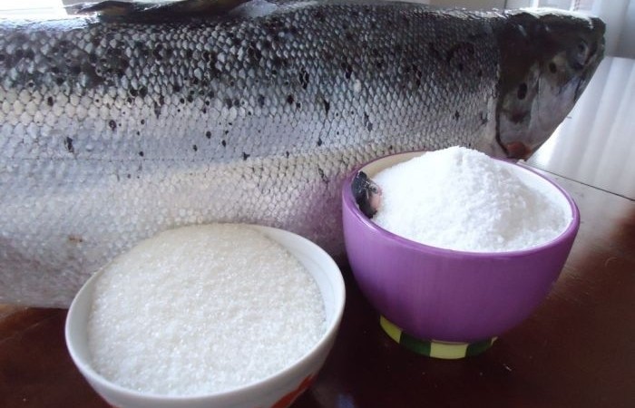 В данном рецепте предлагаем простой вариант засолки семги. Эта вкуснейшая закуска станет прекрасным дополнением любого праздничного стола. Количество соли и сахара рассчитано на килограмм рыбы и его можно увеличивать пропорционально. Соленая семга получается нежной, ароматной и просто бесподобной.
