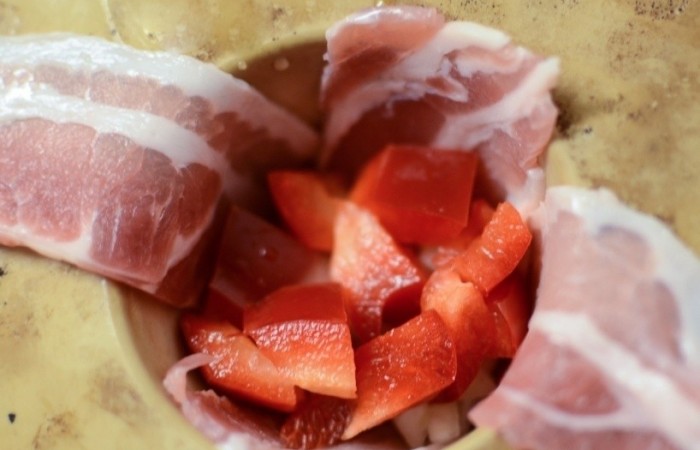 2Затем выкладываем перец, порезанный мелкими кубиками.