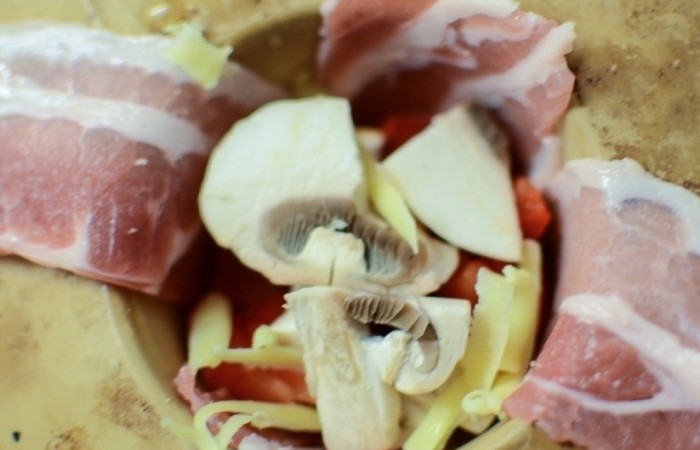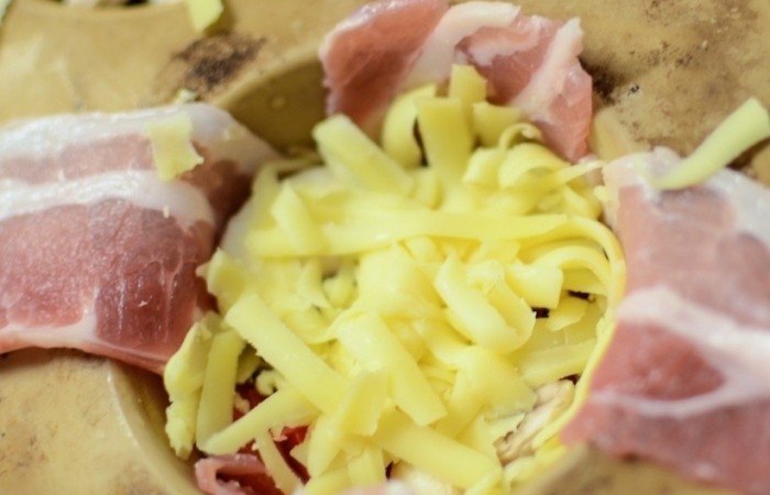 1В каждую из четырех формочек для запекания выкладываем 3 ломтика бекона.