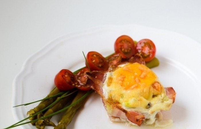 Яичница, запеченная с беконом, вкуснейший прекрасный завтрак, который удивит во всех смыслах. Яичница готовится в специальных формах и поэтому является порционной. Ингредиенты же в блюдо можно добавлять различные, на ваш вкус и желание.