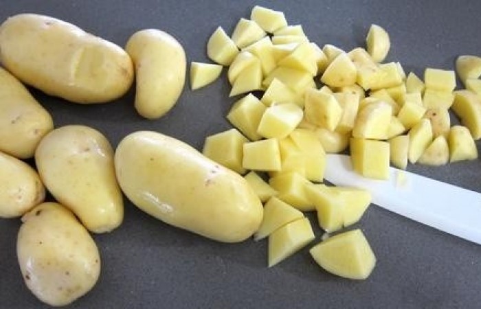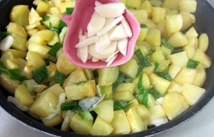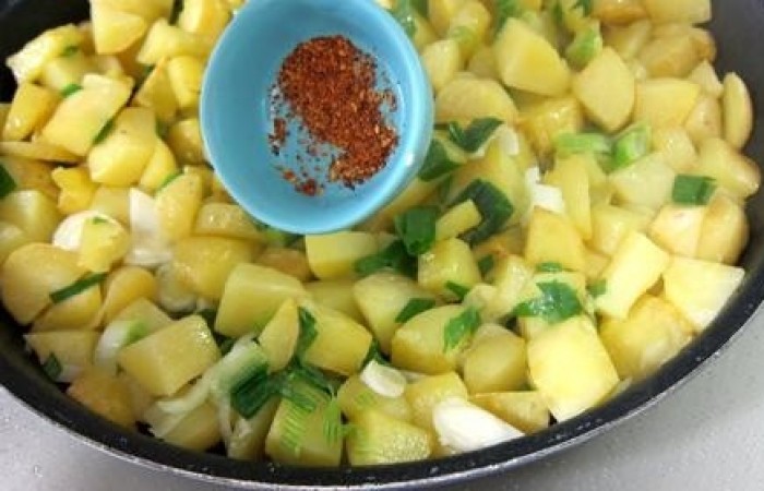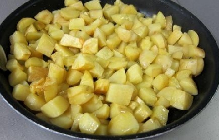 6Картофель обжариваем на растительном масле до образования румяной корочки около 5 минут.